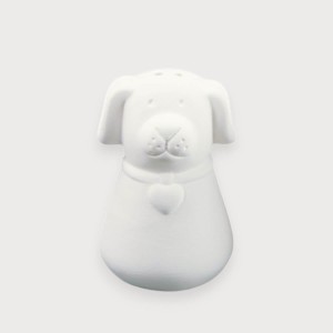 Surowa ceramika biskwitowa w formie dwóch piesków – komplet przyprawników: solniczka z 3 otworami na czubku oraz pieprzniczka z 2 otworami. Gładka powierzchnia ułatwia malowanie i szkliwienie.