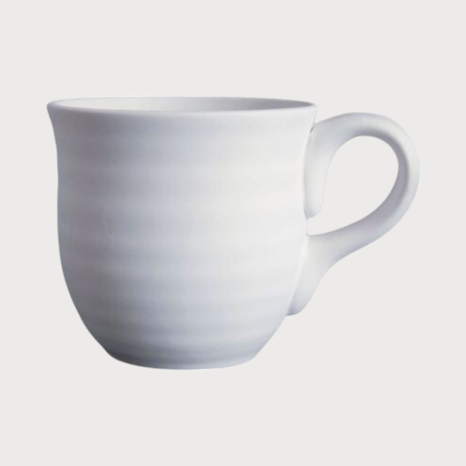 Duży, pękaty kubek o pojemności 500 ml, którego cechą charakterystyczną jest delikatna, nieregularna faktura z poziomymi żłobieniami, nadająca mu rustykalny wygląd i charakter rękodzieła. Produkt oferowany jest w formie surowego biskwitu. Jest to wstępnie wypalona ceramika, która stanowi idealne "płótno" do dalszej pracy artystycznej. Jego porowata powierzchnia doskonale przyjmuje szkliwo i farby. Aby kubek stał się naczyniem użytkowym, wymaga on pokrycia szkliwem dopuszczonym do kontaktu z żywnością oraz ponownego wypału w piecu ceramicznym.