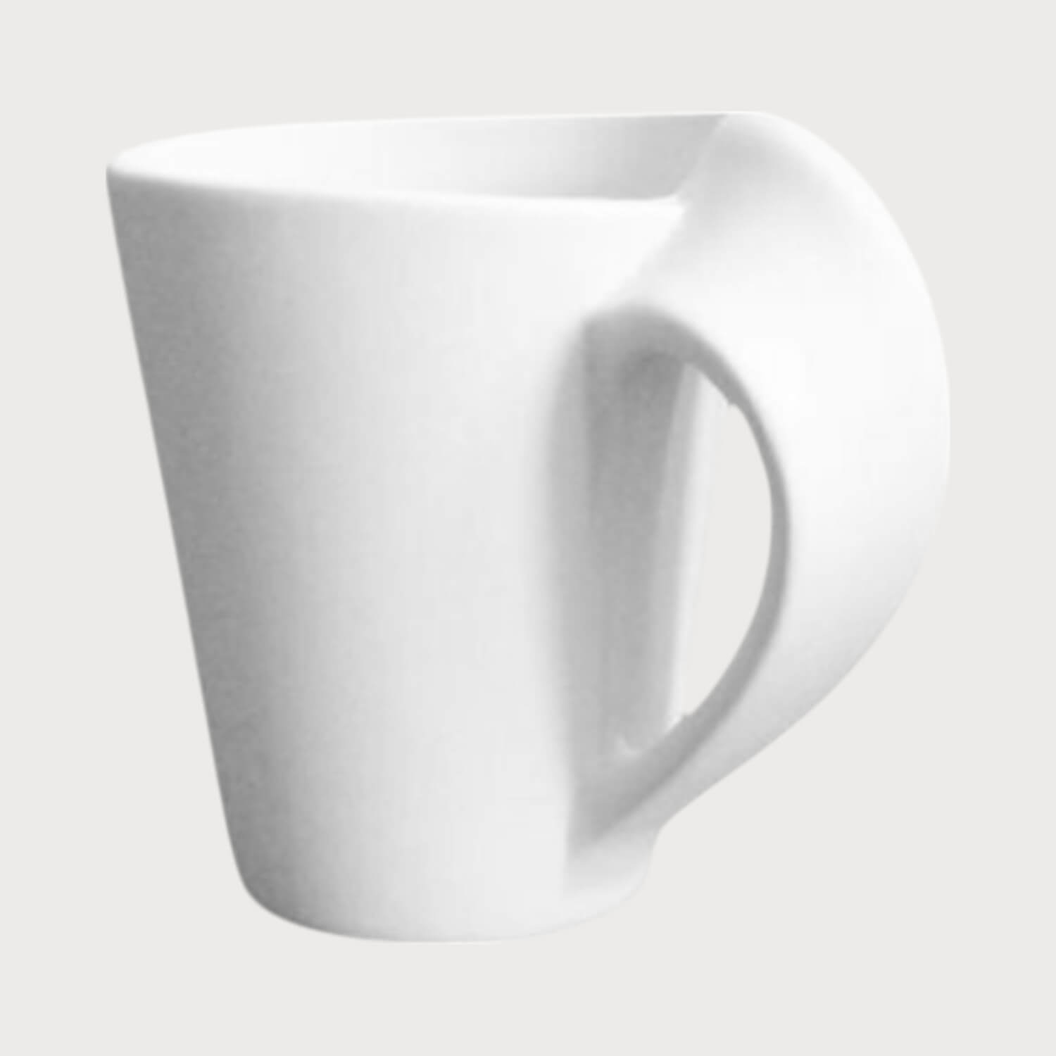Kubek o unikalnym, nowoczesnym designie, w którym ucho stanowi integralną część korpusu, tworząc charakterystyczny, opływowy kształt. Produkt o pojemności 250 ml oferowany jest w formie surowego biskwitu. Jest to wstępnie wypalona ceramika, która stanowi idealne "płótno" do dalszej pracy artystycznej. Jego porowata powierzchnia doskonale przyjmuje szkliwo i farby. Aby kubek stał się naczyniem użytkowym, wymaga on pokrycia szkliwem dopuszczonym do kontaktu z żywnością oraz ponownego wypału w piecu ceramicznym.