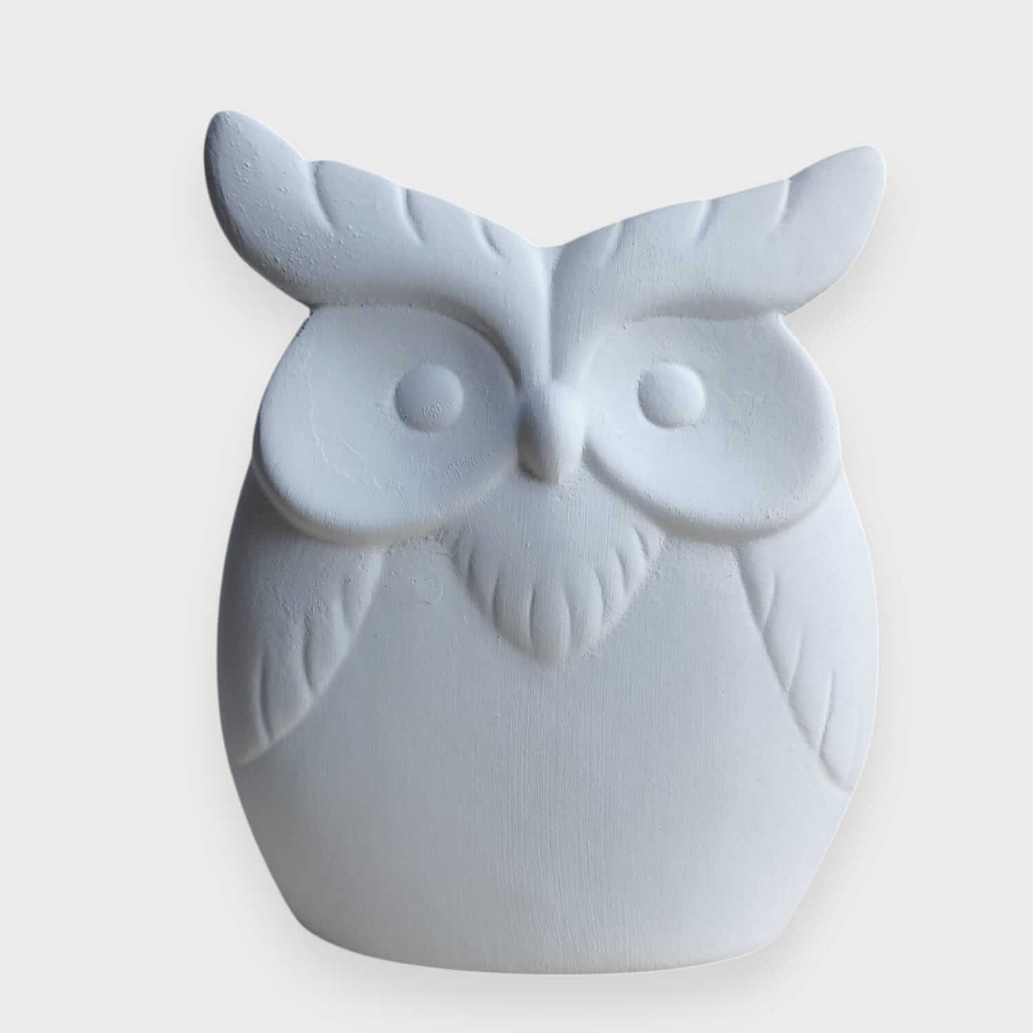 Duża Płaska Figurka Sowa do Malowania i Szkliwienia – Biskwit