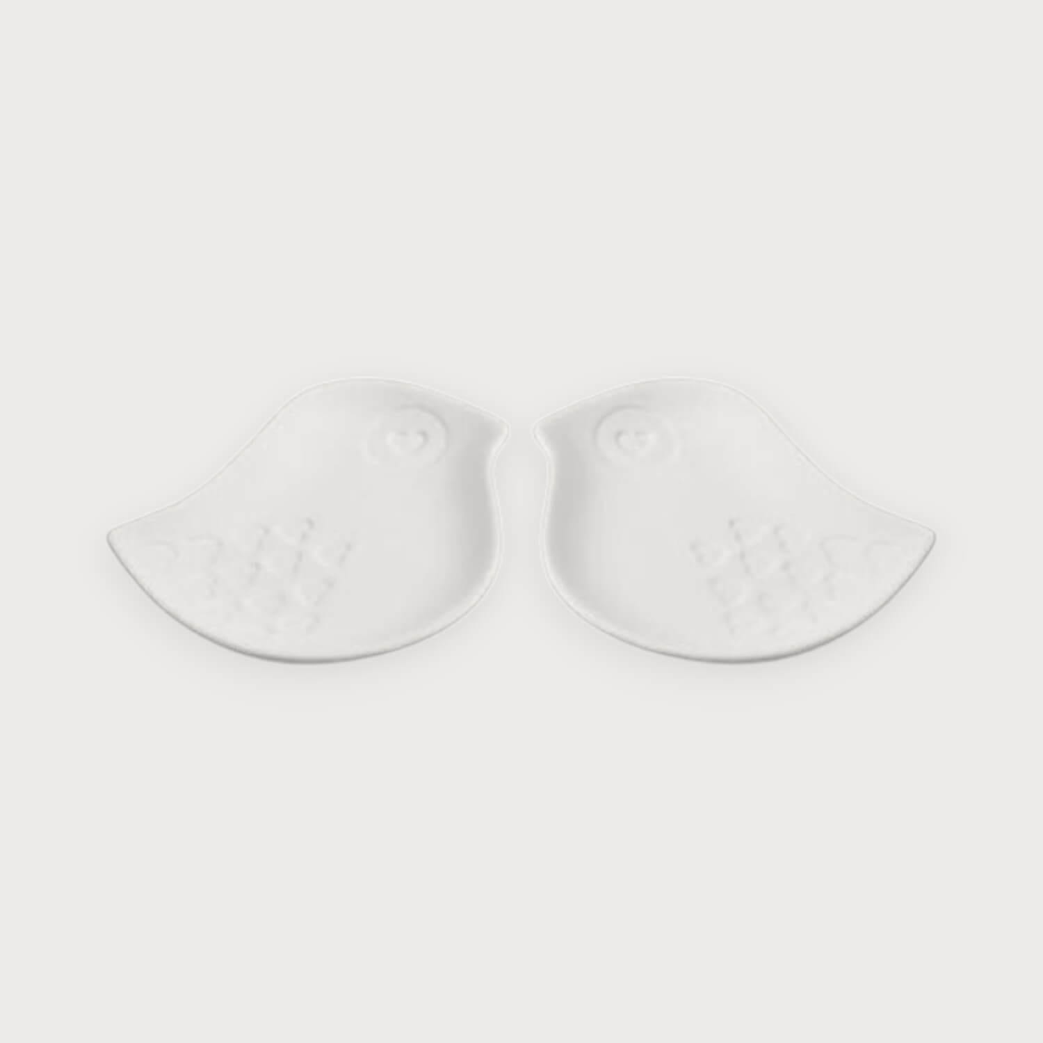 Uroczy zestaw "Zakochane Talerzyki" w kształcie dwóch ptaszków. Wysokiej jakości ceramika biskwitowa, idealna do malowania jako podstawki na biżuterię lub małe przekąski.